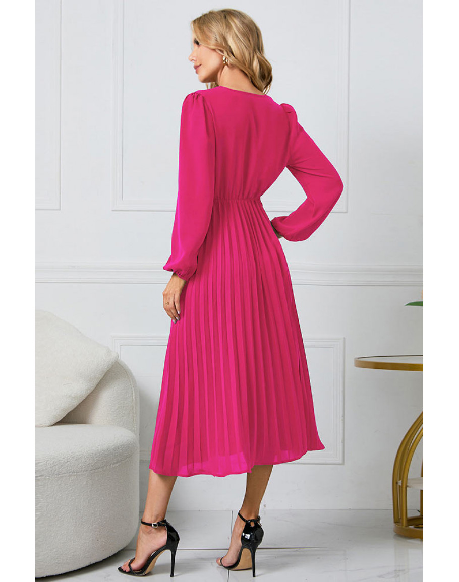 Meet your new style declaration! This midi wrap‑dress features a pleated skirt and cinched waist for effortless flair. Soft drape meets bold structure, a statement piece that whispers luxury.